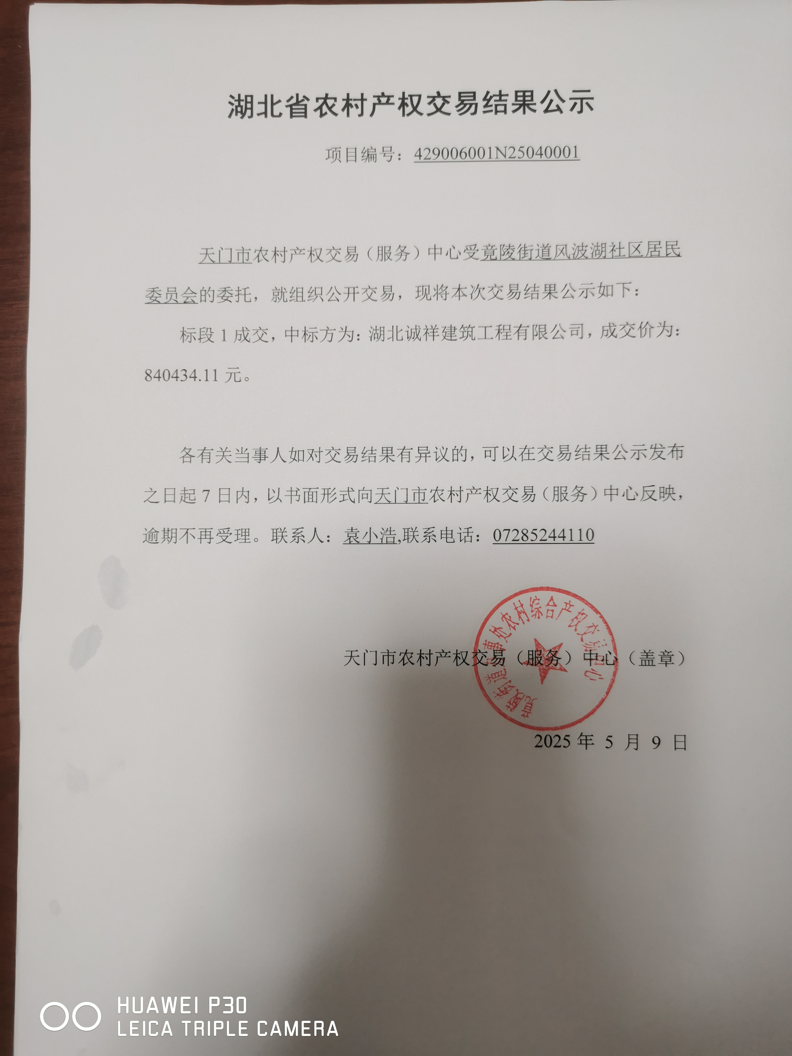 竟陵办事处风波湖社区产权交易结果公示
