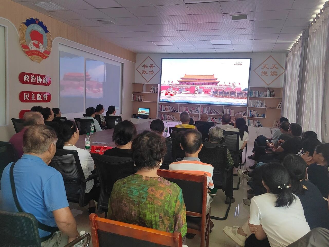竟陵办事处鸿渐社区组织党员及居民代表集中观看中国人民抗日战争暨世界反法西斯战争胜利80周年阅兵仪式