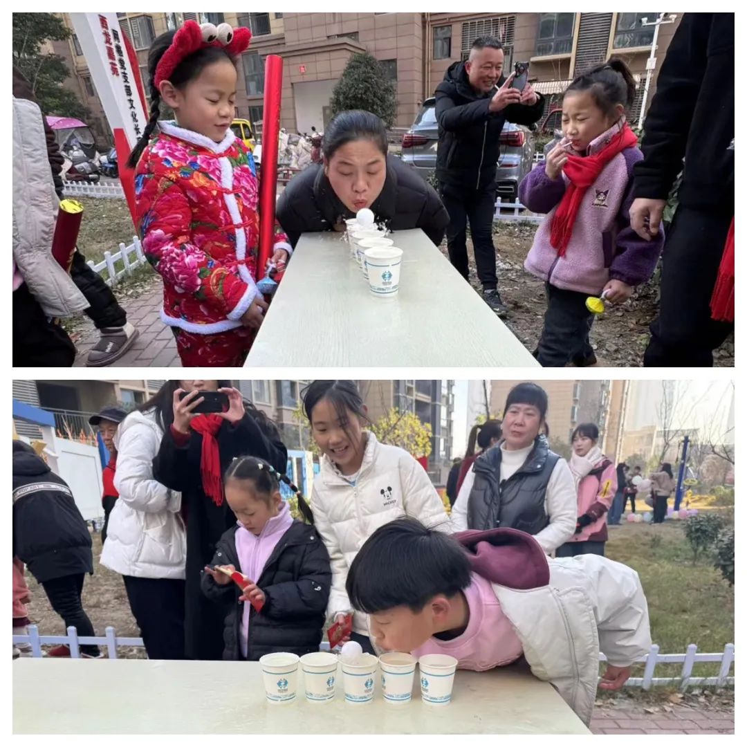 活动现场布置得喜庆热闹,到处洋溢着浓浓的节日氛围。活动设置了欢乐游戏区、手工创意区、书法沙龙三个区域,分别为气球大作战、吹乒乓球、拔河游戏、太空漫步、剪纸游戏、写对联、送对联。邀请财神为大家送福(发礼品),每个游戏都充满了挑战与乐趣。