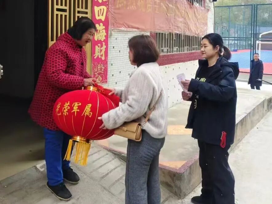 伴着阵阵热闹的锣鼓声,官路社区党委副书记郭廷同志带领社区工作人员,抬着精心准备的新春灯笼与对联,来到辖区现役军人家中。每到一户,都与军人军属促膝长谈,详细询问他们的身体状况、家庭生活情况,认真倾听他们的心声,感谢军人家属默默支持国防和军队建设,感谢现役军人在服役期间保家卫国奉献青春力量。