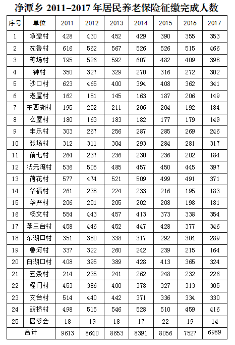 附表一:净潭乡2011-2017年居民养老保险征缴完成人数