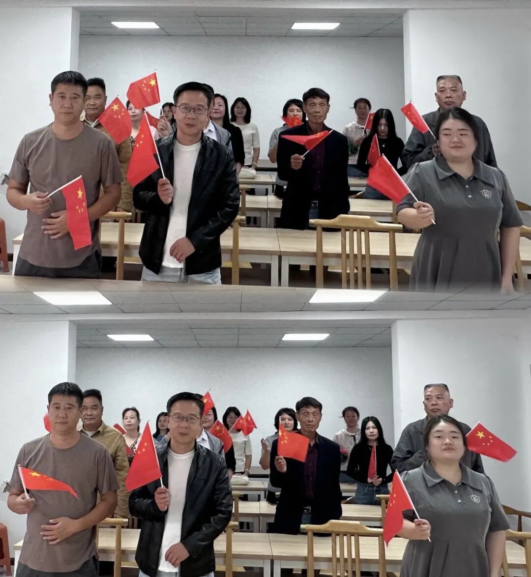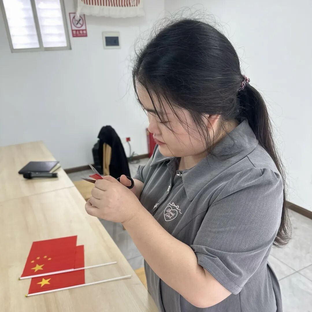 “五星红旗迎风飘扬,胜利歌声多么响亮。歌唱我们亲爱的祖国,从今走向繁荣富强...”伴随着《歌唱祖国》激昂的旋律,活动正式拉开序幕。居民们手持鲜艳的小国旗,跟着悠扬曲调齐声高歌,红色旗帜在手中轻轻摇曳,嘹亮歌声在空中久久回荡。大家以合唱的方式,将对祖国母亲的无限热爱与美好祝福融入每一个音符,用最真挚的情感传递浓厚家国情怀,为现场增添了热烈而庄重的节日氛围。