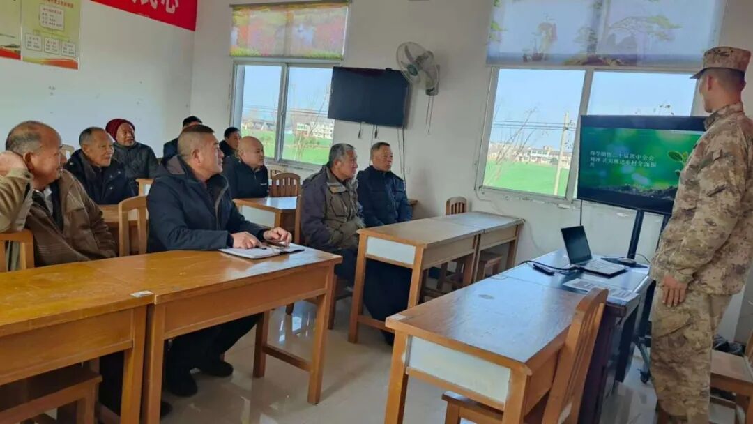 村委会里,一堂围绕党的二十届四中全会精神的“院落党课”正在开讲,宣讲员言语朴实亲切,10余名群众参与这场理论党课。