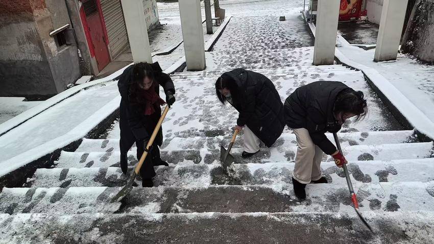 雨雪天气来袭后,镇机关干部、村社区党员干部和志愿者们广泛发动沿街商户、热心群众加入铲冰除雪队伍,全面开展铲冰除雪作业,形成“上下联动、全民参与”的良好局面。大家顶风冒雪、连续奋战、分工协作,挥舞着铁锹,有条不紊地清除路面积雪、破除冰层,用忙碌的身影构筑起一道坚实的“安全屏障”。针对桥梁、坡道、背阴路段等易结冰区域,采取“人工清扫+融雪剂辅助”的组合方式,保障人车通行。对因雨雪天气导致的道路隐患,迅速设置警示标识,及时进行处置,全力防范各类安全事故发生。