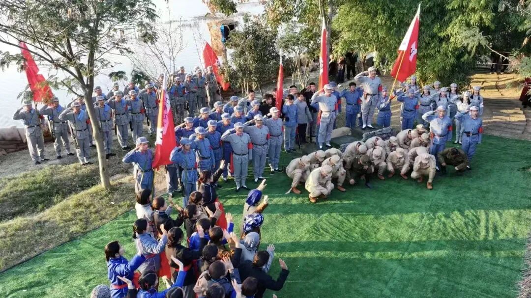 1932年烽火岁月中的一场经典战役,在九十多年后的今天被再度搬上舞台。11月20日,由市委宣传部、市人武部总策划,市文旅局总执行的大型红色经典情景剧《文家墩大捷》在天门市皂市镇长寿山原村景区隆重首演。演出汇聚了天门文旅系统干部职工、皂市民兵、天门职业学院学生及社会爱心人士共两百余人,以磅礴的声势和深情的演绎,生动再现了贺龙元帅率领工农红军第三军英勇作战的光辉历史,赢得现场观众阵阵掌声。