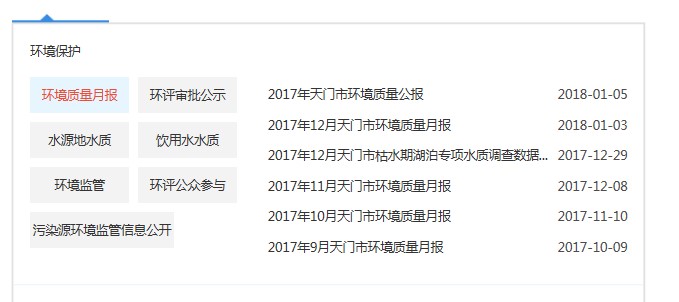 十三是推进环境保护信息公开。主动回应社会关注和群众关切的热点问题,印发《天门市重污染天气应急预案》、《天门市土壤污染防治工作方案》,公开土壤重点监管企业名单2个,公开环保接受履职尽责督促检查工作简报26期,累计销号公示中央环保督察反馈意见整改情况32处,公开责令停产整治决定书3份、行政处罚决定书12份、责令改正违法行为决定书5份、查封(扣押)决定书2份。至今累计公开环境质量月报38次,环评审评公示65家企业,水源地水质季报7次,公示城区和乡镇生活饮用水日监测信息公示表500余次,公示环评公众参与42条,公示国控重点污染源监督性监测季报3期。在市政府网站首页显著位置设置了环保申报审批服务网上办事大厅,集中展现12369环保举报平台、环保网上行政审批、建设项目环境影响登记表备案系统、建设项目环境影响评价登记表备案公示累计已有56项、企业自行监测信息发布平台、污染源自动监控综合管理平台、建设项目环境影响评价信息平台、环保办事状态结果查询等。推进公开了乡镇级河道河长226人姓名及责任分工,公开了市级河道43条及其担任河长的市领导姓名及责任分工,公开了市级湖泊45个及其担任湖长的市领导姓名及责任分工。