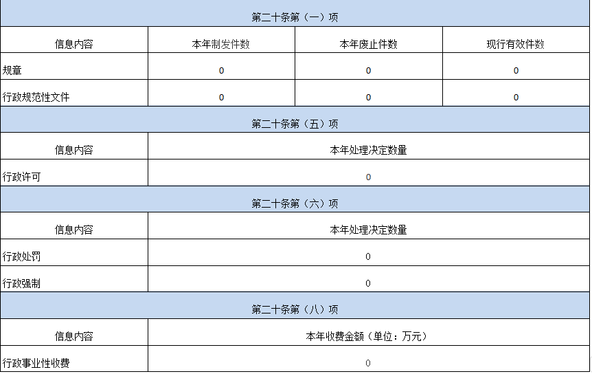 一、本年新收政府信息公开申请数量 | 0 | 0 | 0 | 0 | 0 | 0 | 0 | ||