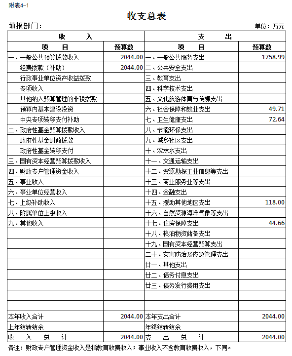 一、部门收支总表