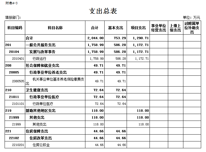 部门支出总表