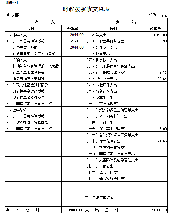 四、财政拨款收支总表