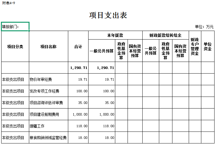 九、项目支出表