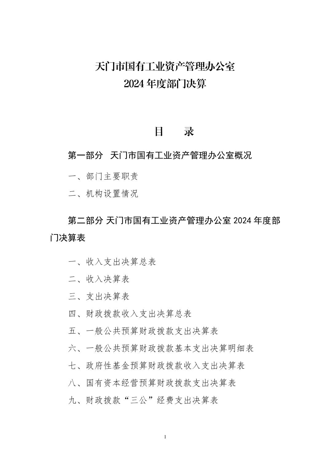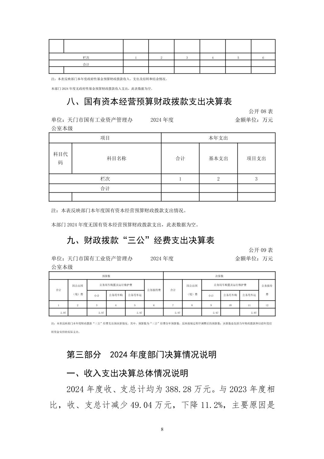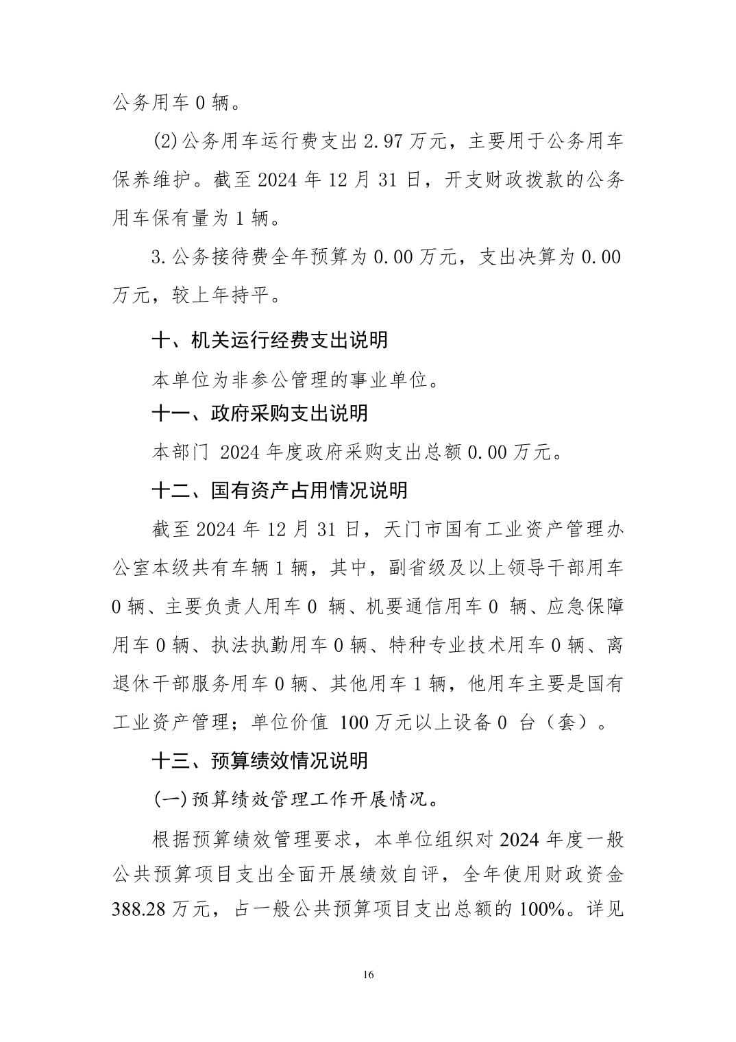 天门市国有工业资产管理办公室2024年度部门决算公开