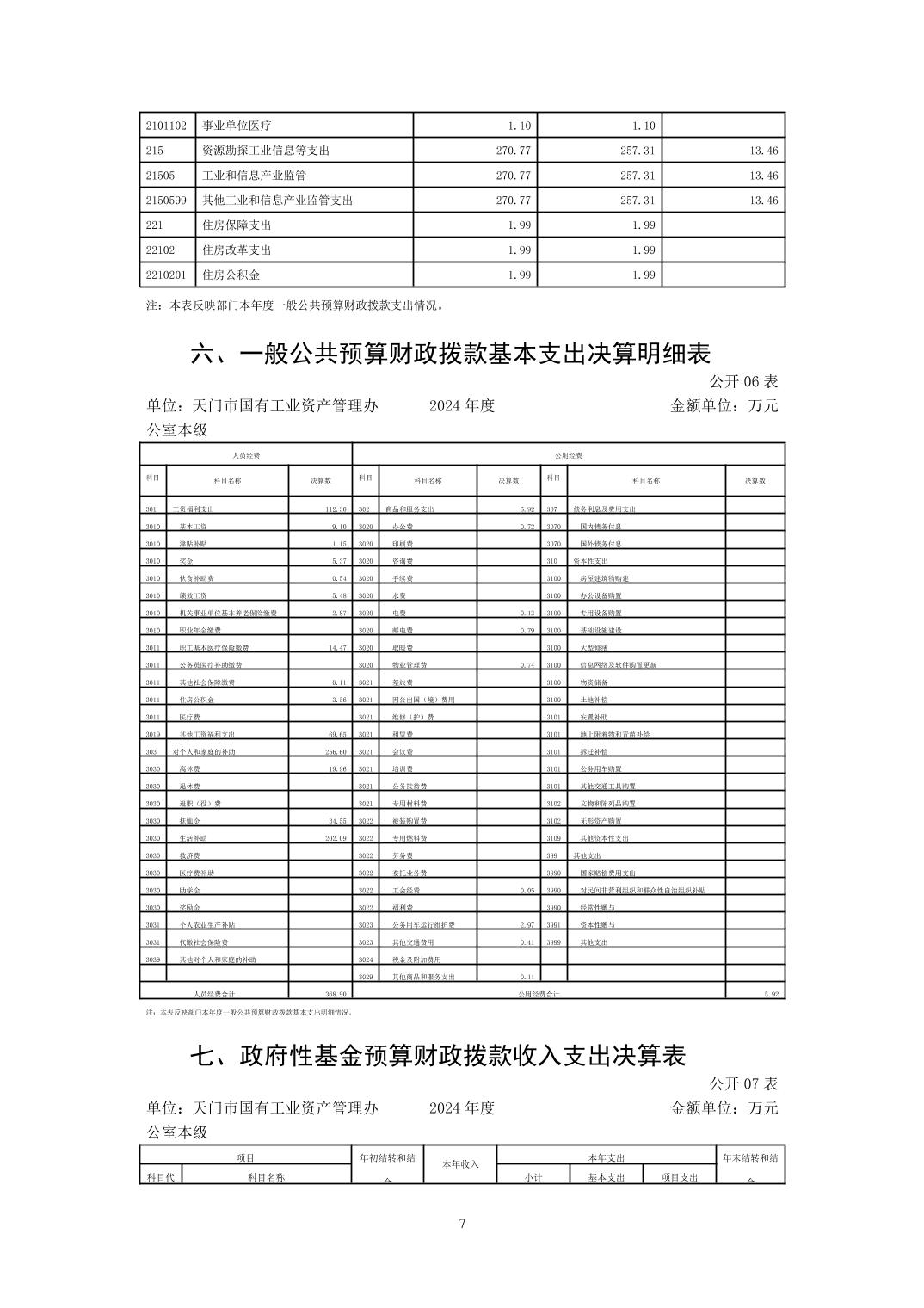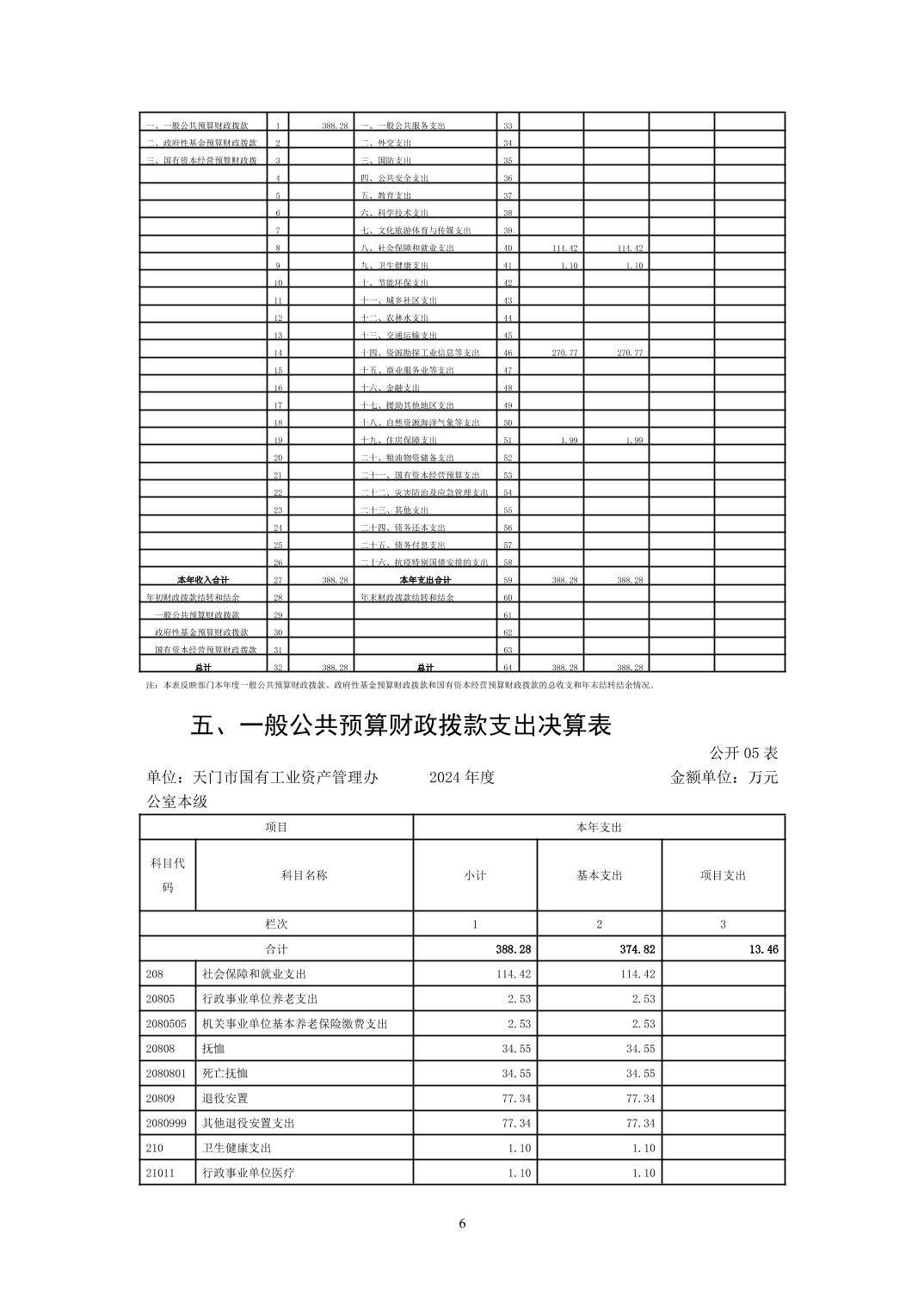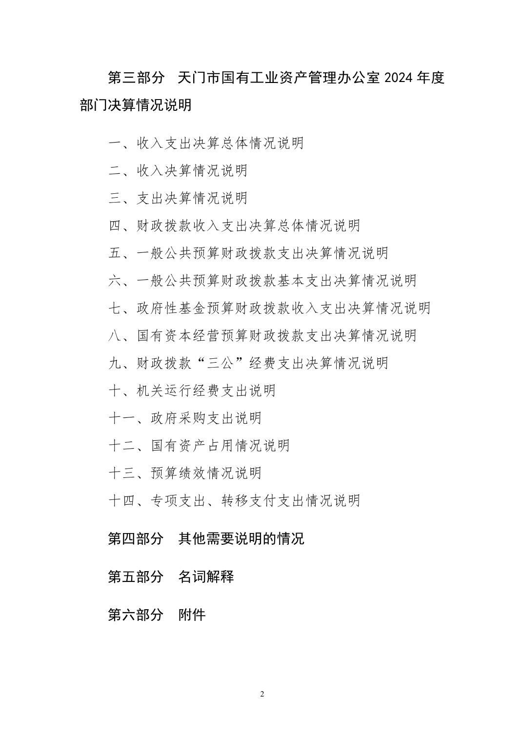 天门市国有工业资产管理办公室2024年度部门决算公开