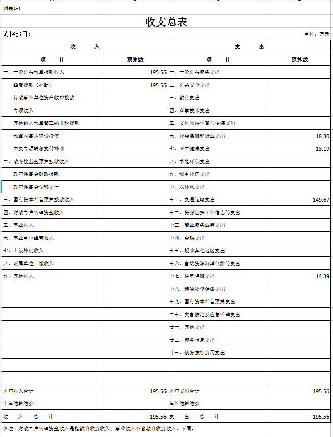 一、部门收支总表