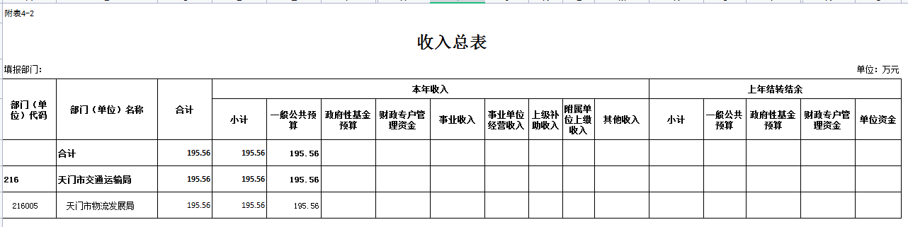 二、部门收入总表