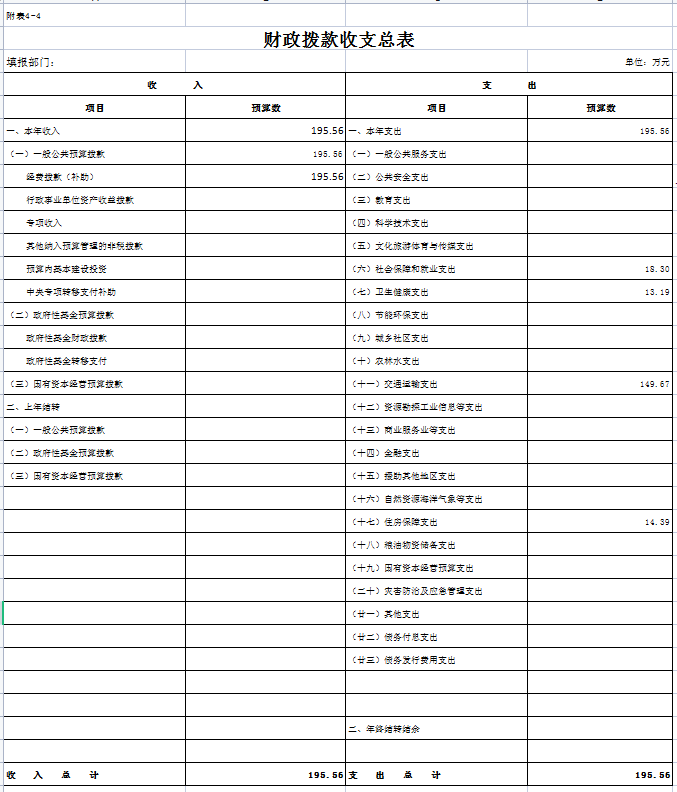 四、财政拨款收支总表