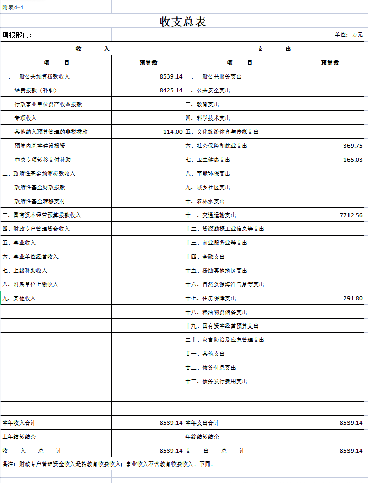 一、部门收支总表