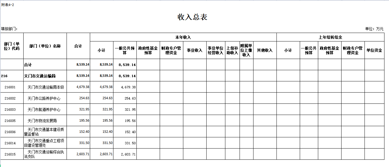 二、部门收入总表