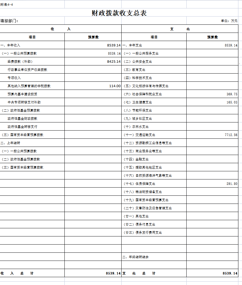 四、财政拨款收支总表