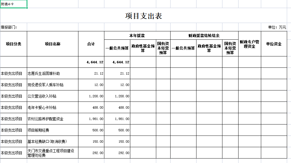 九、项目支出表