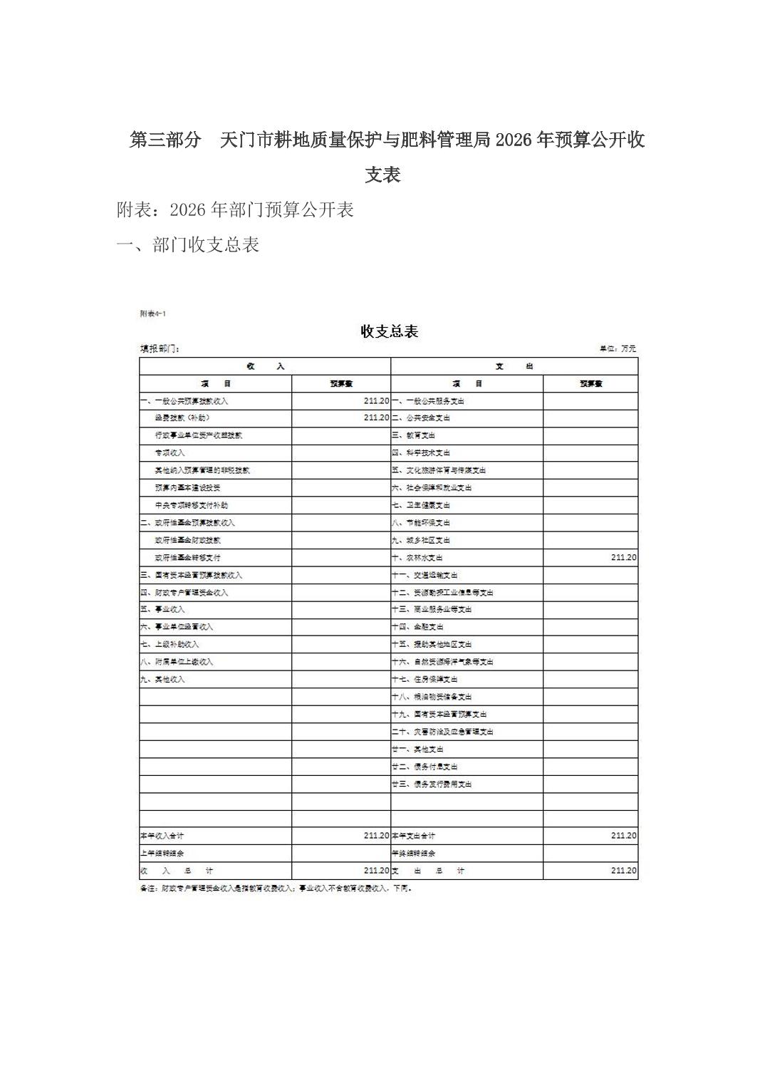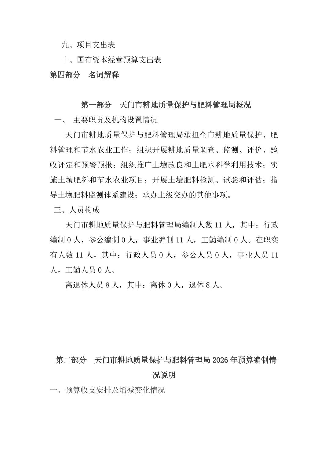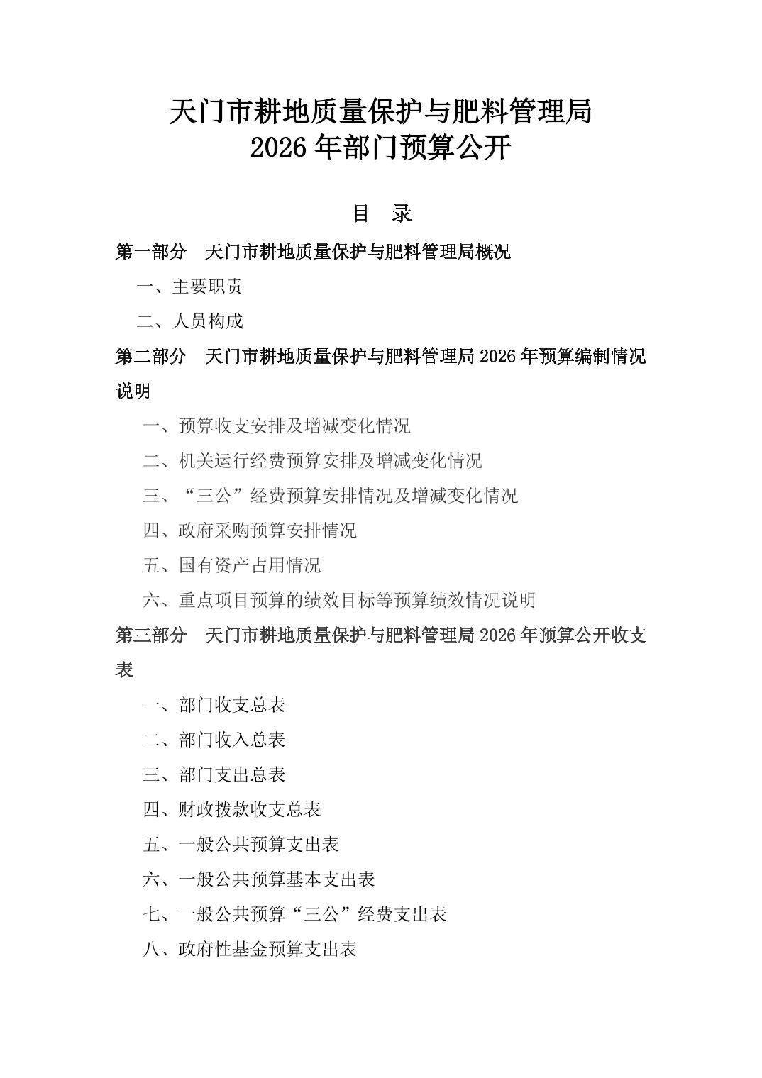 天门市耕地质量保护与肥料管理局2026年部门预算公开
