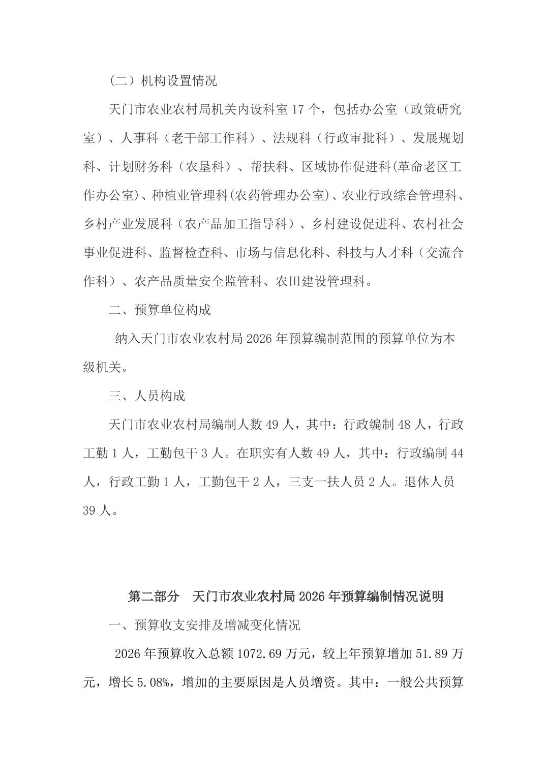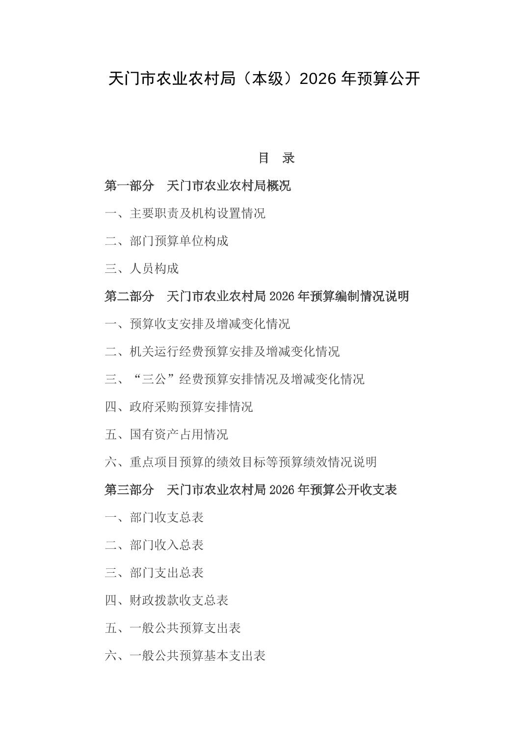 天门市农业农村局(本级)2026年部门预算公开