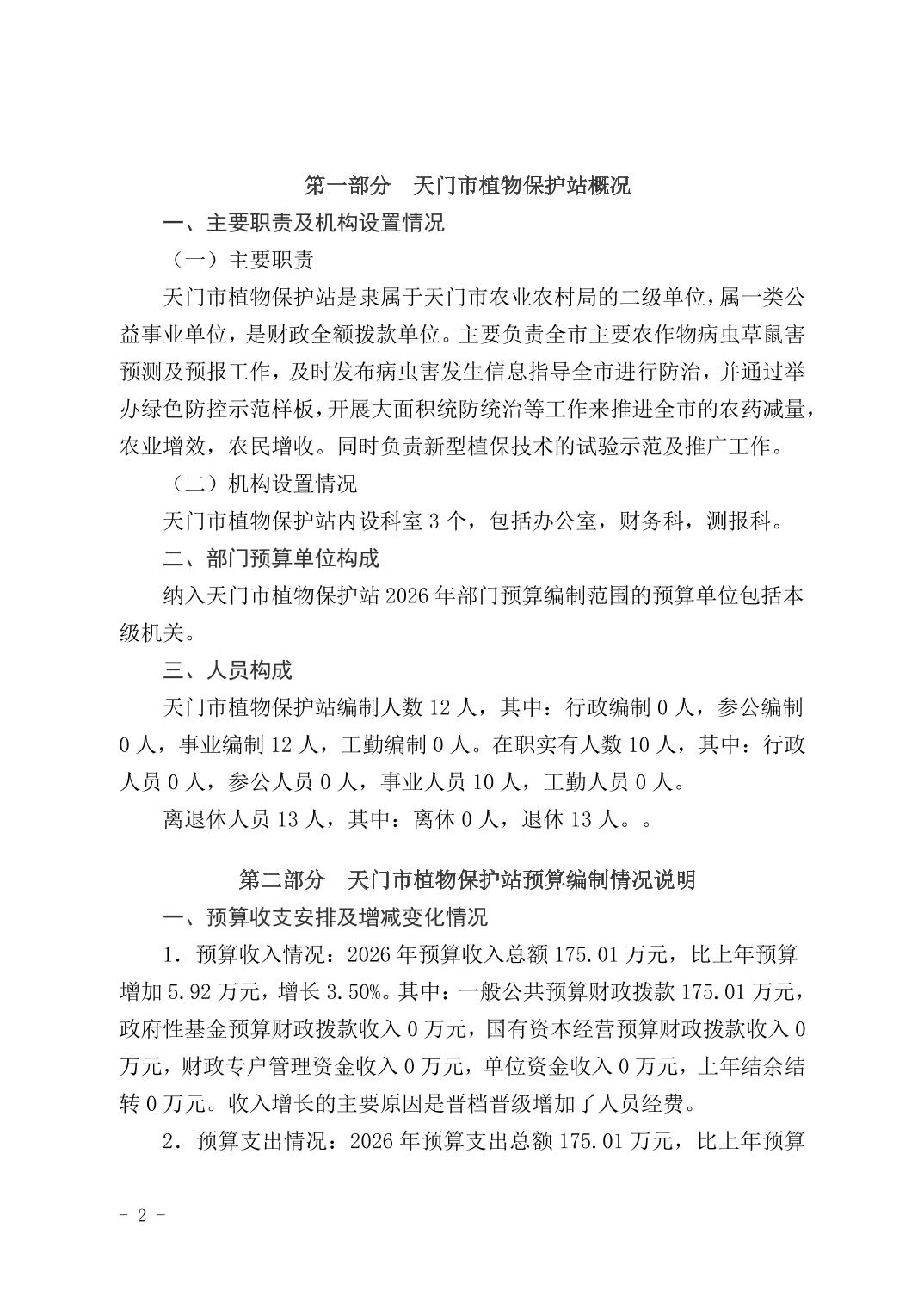 天门市植物保护站2026年部门预算公开