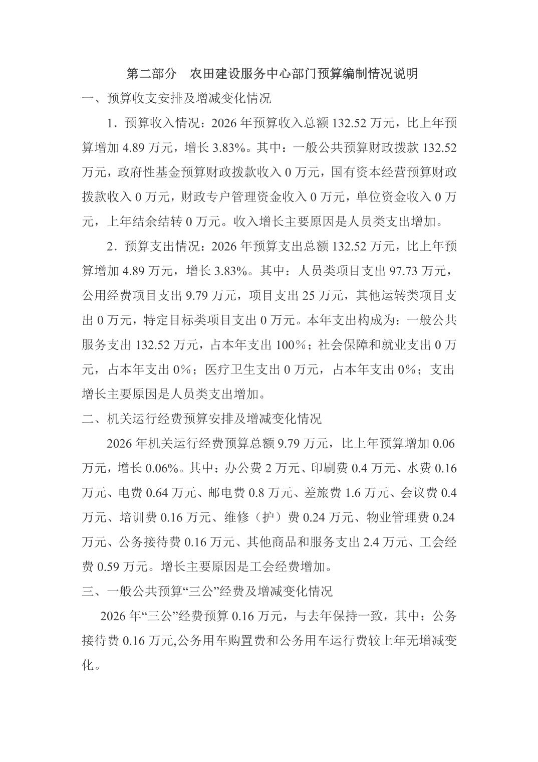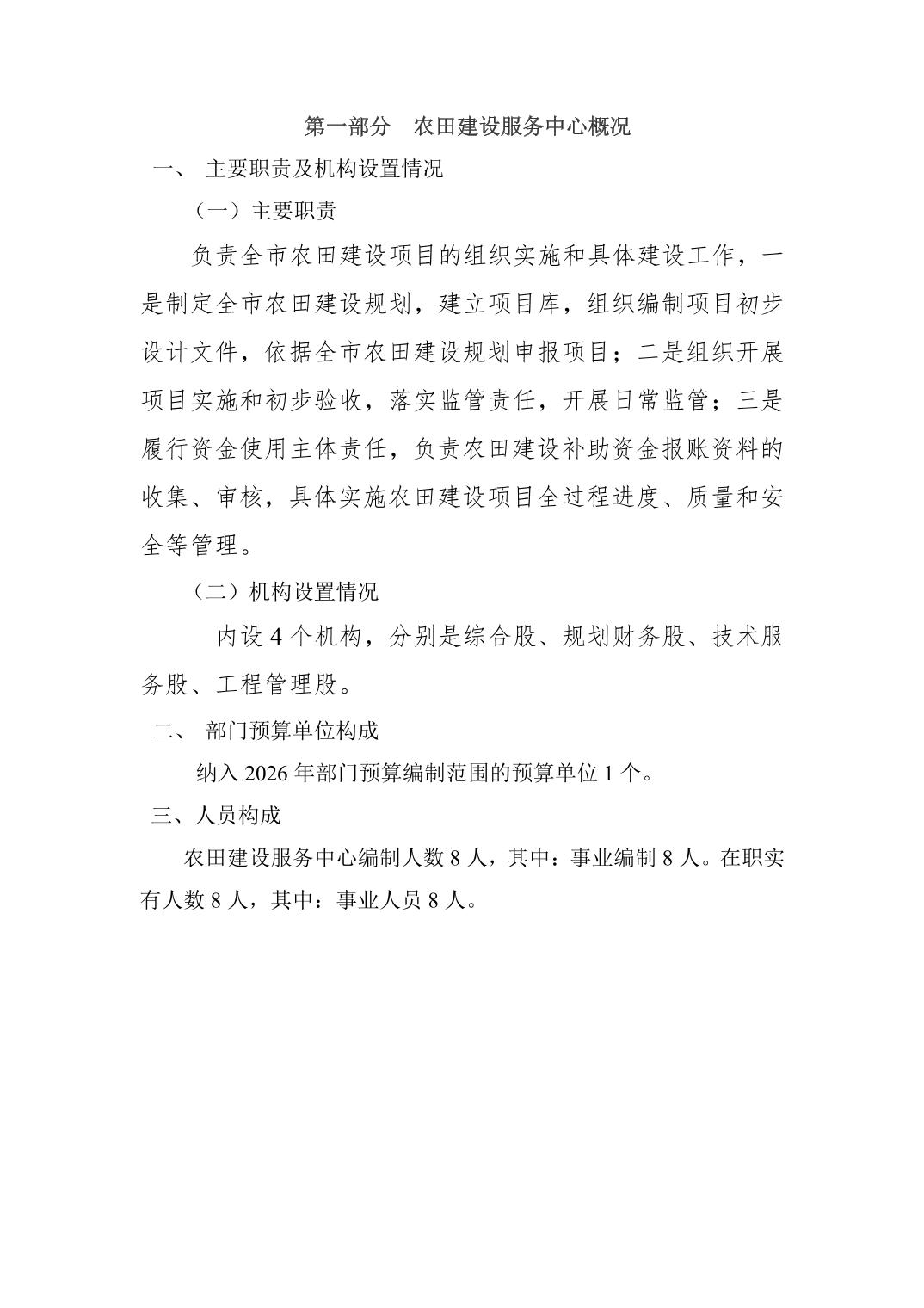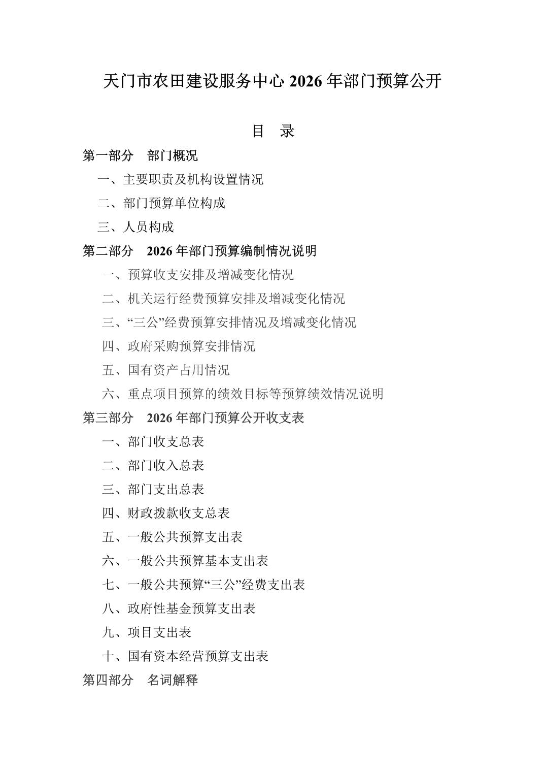 天门市农田建设服务中心2026年部门预算公开