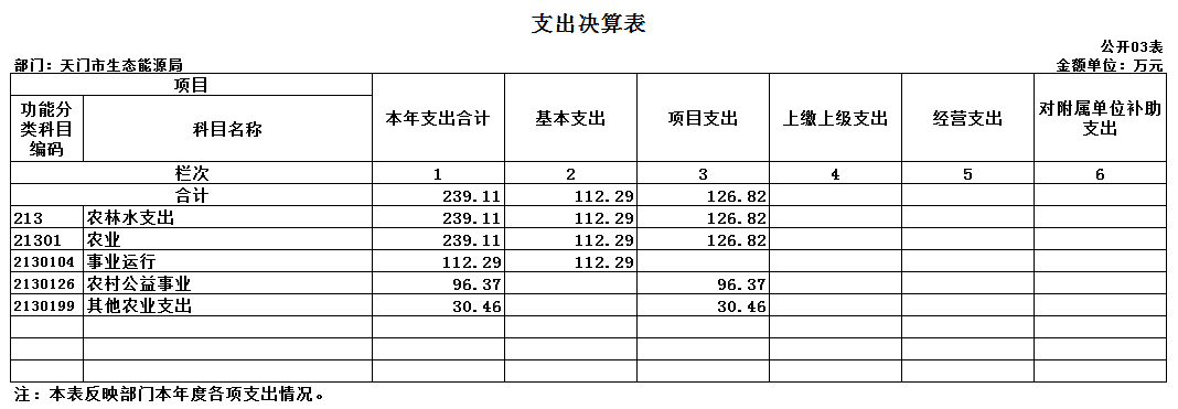 本单位决算仅包括天门市生态能源局机关,无下级预算单位。