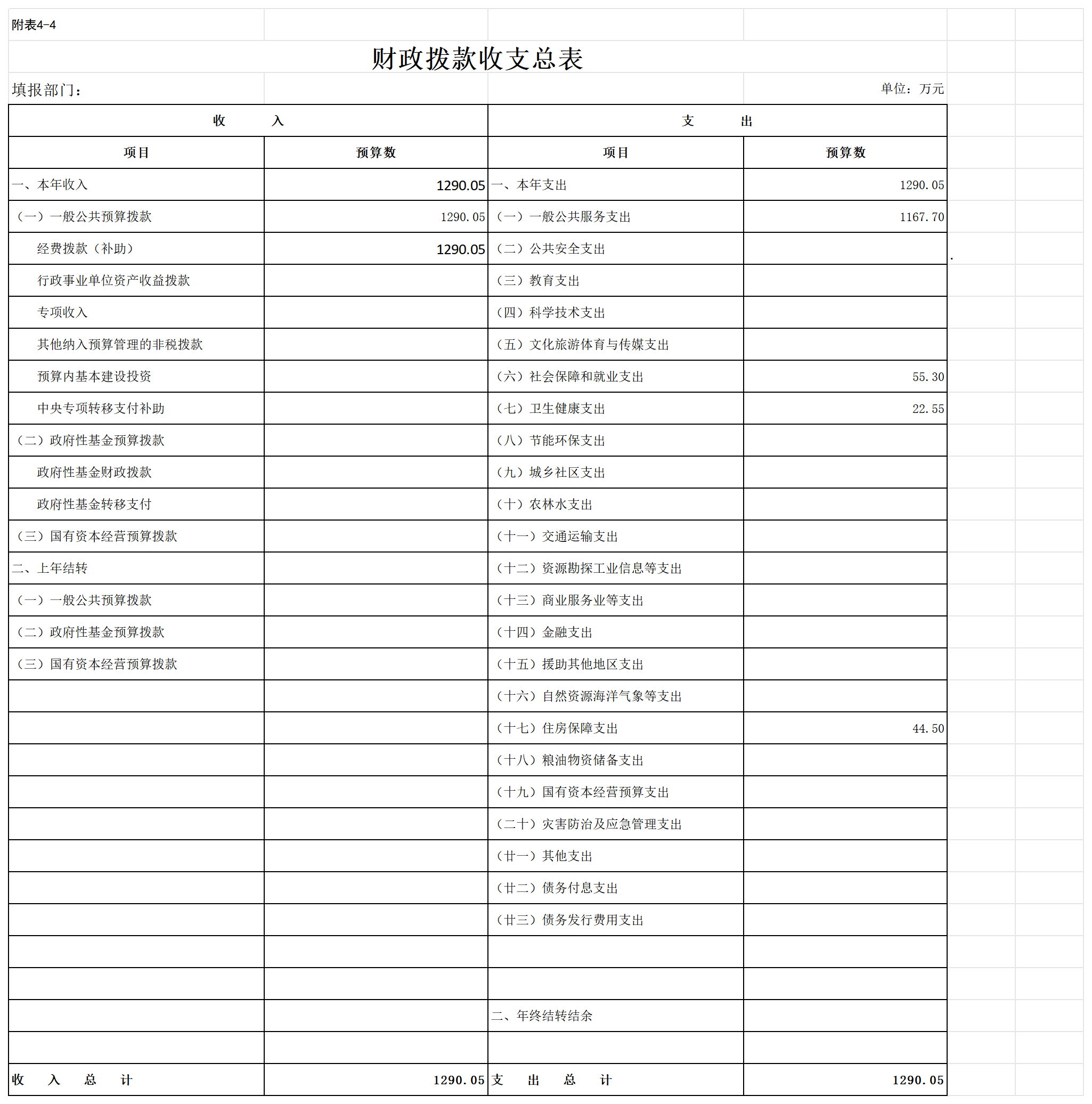 一、部门收支总表