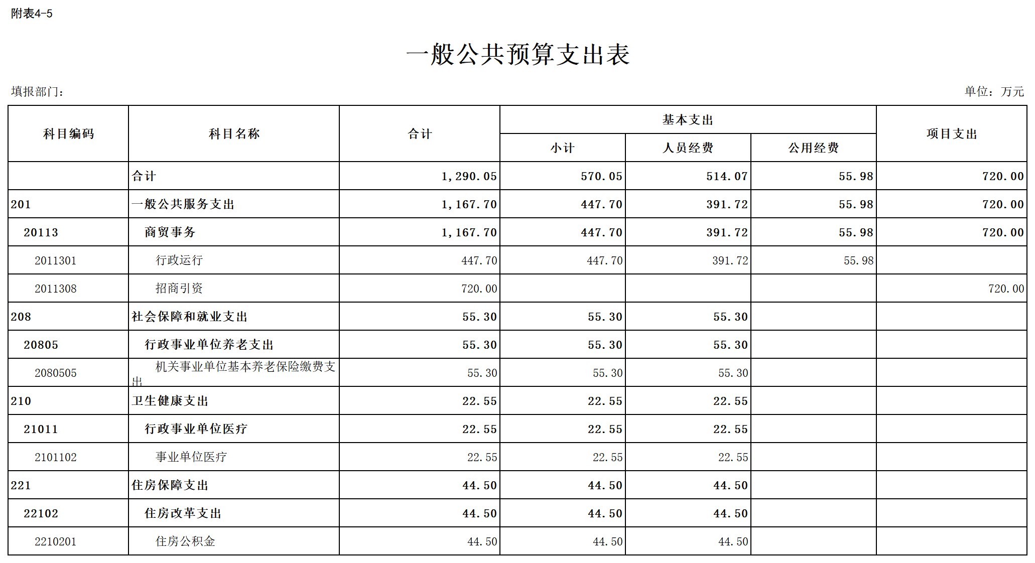 五、一般公共预算支出表