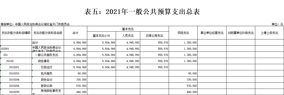 2021年一般公共预算支出总额688.5万元,较上年预算安排增加23.65万元,增加3.4%。增加原因是:人员增加。具体情况包括: