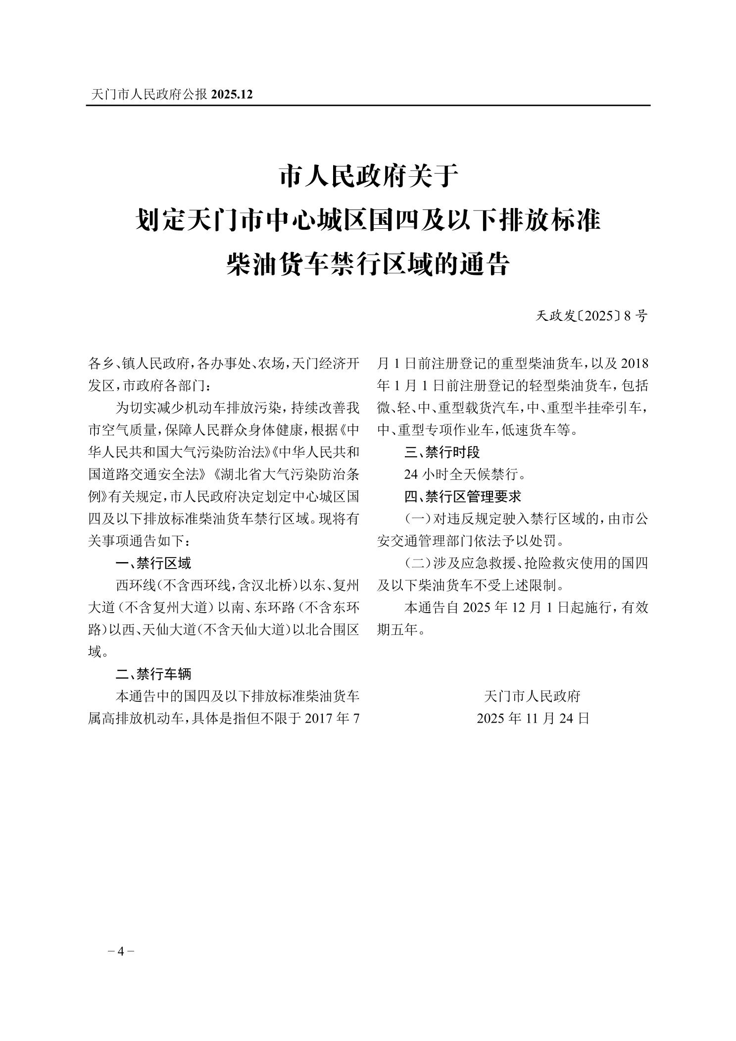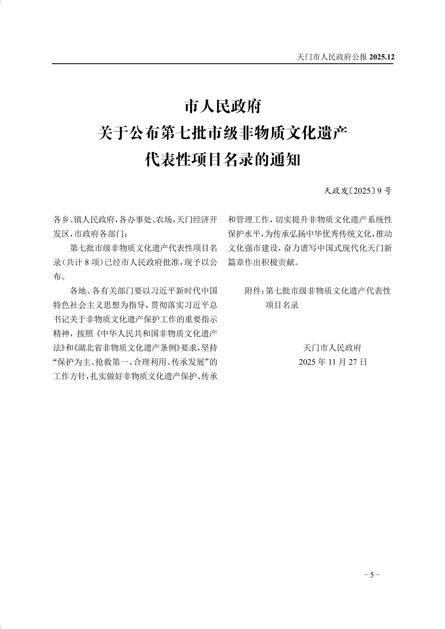 天门市人民政府公报2025第4号(总号:55)