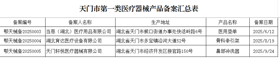 根据《医疗器械监督管理条例》( 国务院令第739号)、《医疗器械注册与备案管理办法》( 国家市场监督管理总局令第47号)和《国家药监局综合司关于加强第一类医疗器械备案管理的通知》(药监综械注〔2023〕89号)要求,现将我市第三季度已备案的第一类医疗器械产品备案信息予以公告。