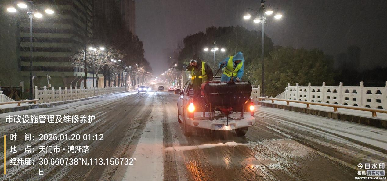 为有效应对今冬以来最强寒潮雨雪冰冻天气,天门市住房和城市更新局迅速响应、周密部署,紧紧围绕“保安全、保畅通、保民生、保运行、保稳定”的总体目标,严格执行 24 小时轮班值守制度,建立“局领导包片、科室包点、单位包路段”的重点区域包保责任制,组建市政设施监测专班落实动态巡查“叫应”机制,确保冻情隐患早发现、早处置。