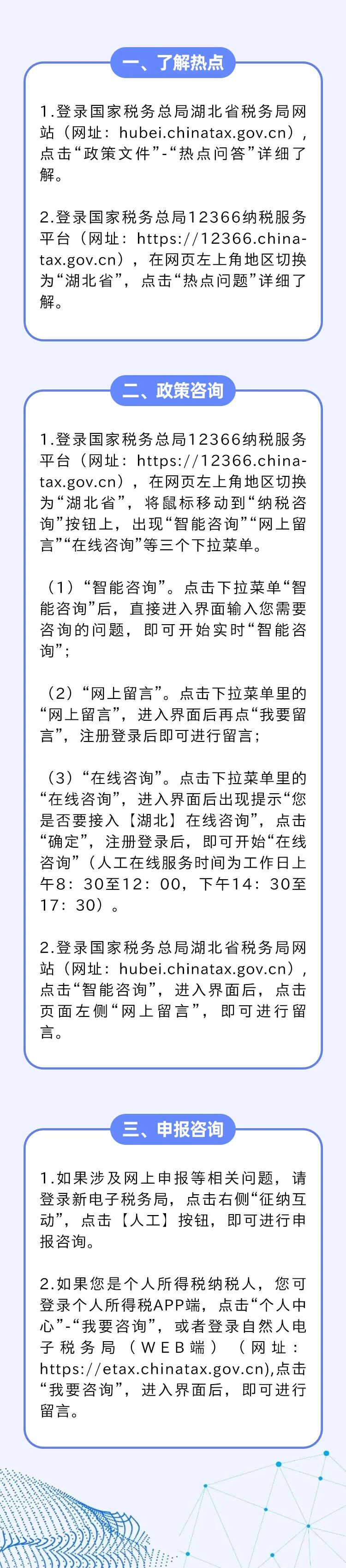 如您还有其他税费需求或疑问,可以通过以下渠道进行了解或咨询:
