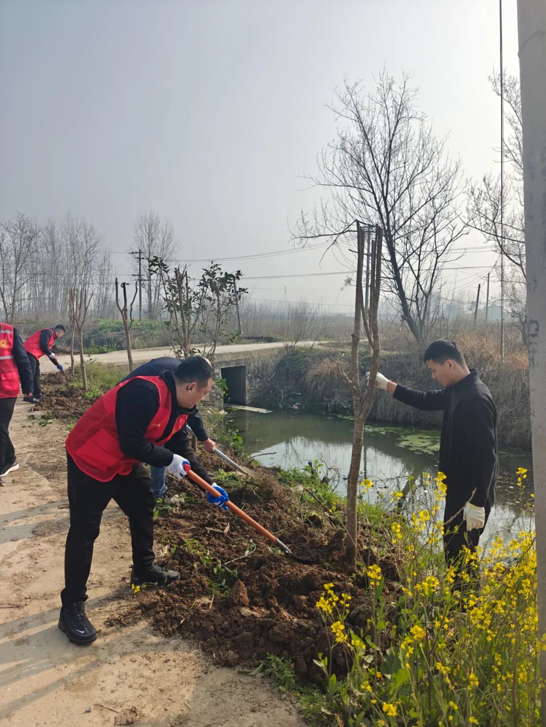 植树现场,大家热情高涨、干劲十足、分工协作,配合默契。经过辛勤劳作,王施村湾王公路旁300余株新栽种的桂花苗迎风挺立,在明媚的春光中展现出勃勃生机。