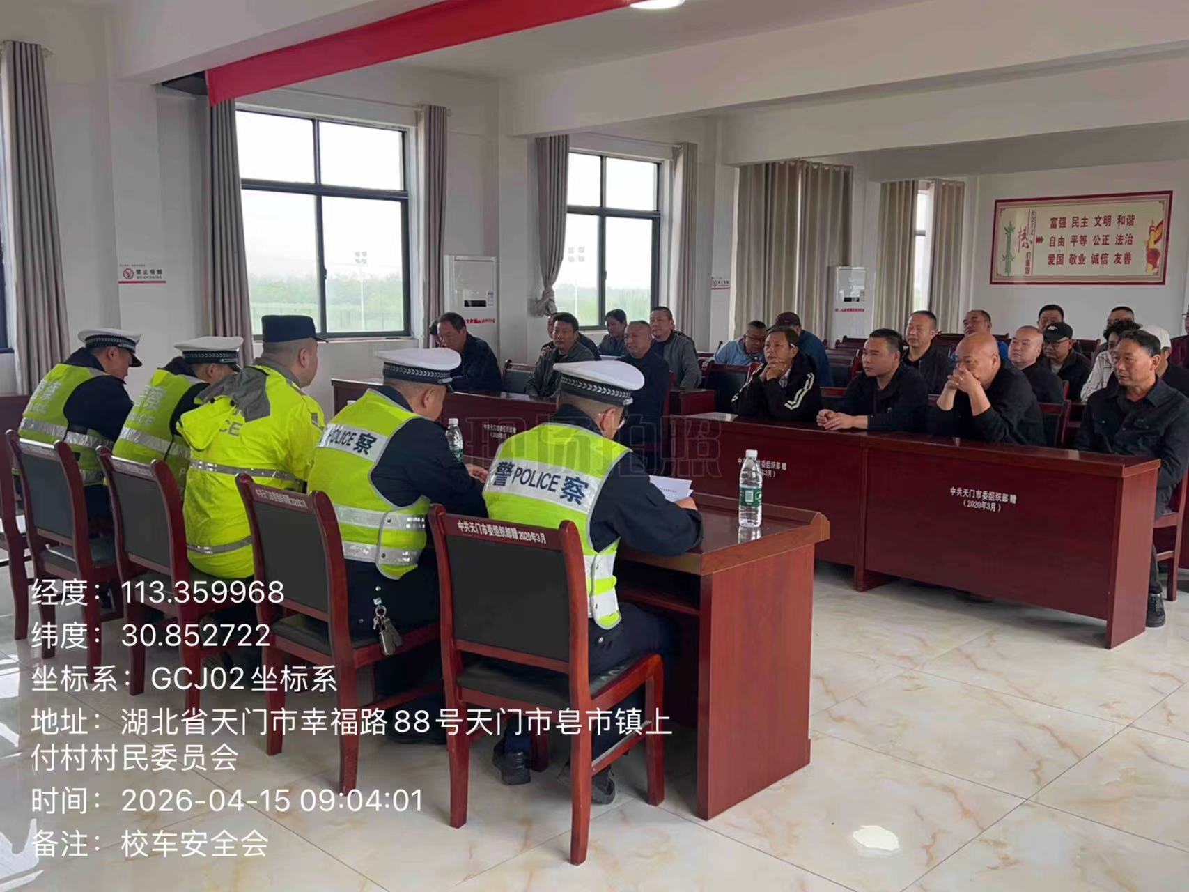 为切实做好辖区中小学校及幼儿园交通安全工作,严格确保学生接送车辆行车安全,4月15日,皂市派出所组织交通民警,集中所有校车、司机在上付村委会召开校车安全大会。