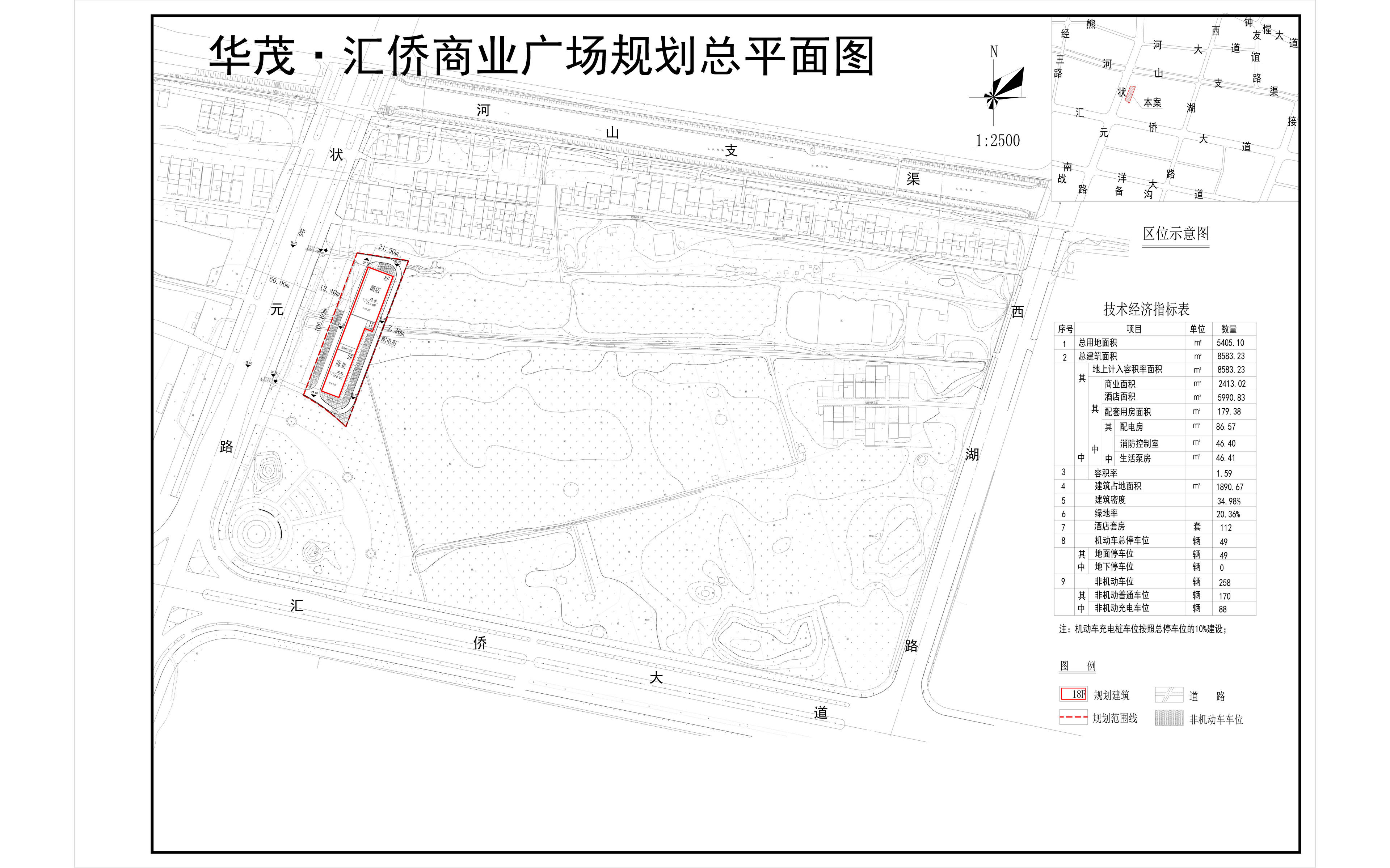 湖北华浩置业有限公司申报的华茂·汇侨商业广场项目,位于汇侨大道以北,状元路以东。本次规划方案主要为:一栋8层酒店,一栋2层商业,以及配电房等相关配套设施。项目总建筑面积为8583.23平方米,计容总建筑面积为8583.23平方米,容积率为1.59。具体详见规划总平面图和效果图。经我局审查,拟同意批准该项目规划方案,现将拟批准的规划总平面图予以公示。有关单位或个人如对此规划有异议,请在公示期间向市自然资源和城乡建设局提出书面异议书。